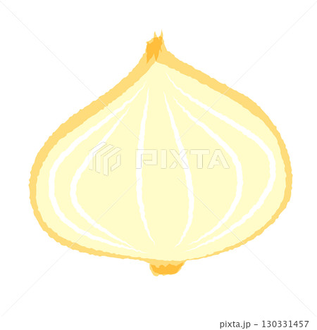タマネギのフラットイラスト。半分に切った玉ねぎの断面図。
