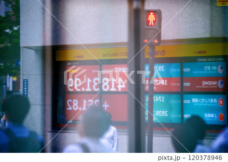 日本の東京都市景観 ガラスに映る株価4万円台だが…裏返る日本経済…霧に霞むかのような日本経済の行末…