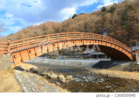 雪が降り積もった橋(木曽の大橋 奈良井宿 長野県 塩尻市)