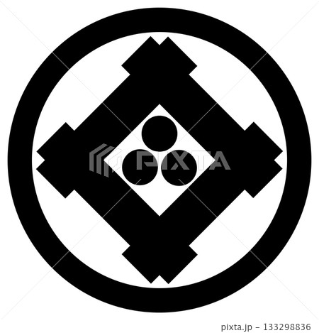 家紋です。丸に隅立て井筒に三つ星といいます。