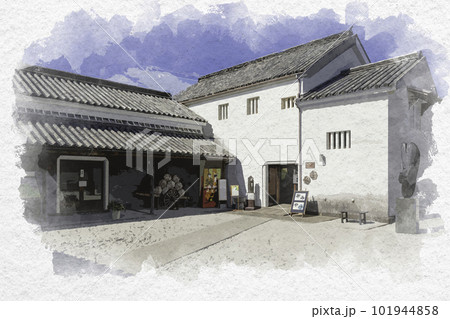 水彩画風 引田 讃州井筒屋敷 醤油甕 香川県東かがわ市