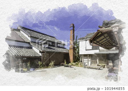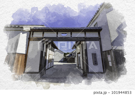 水彩画風 引田 讃州井筒屋敷 井筒屋文政樽 香川県東かがわ市