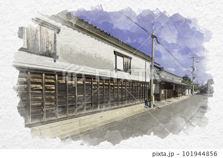 水彩画風 引田 讃州井筒屋敷 蔵 香川県東かがわ市
