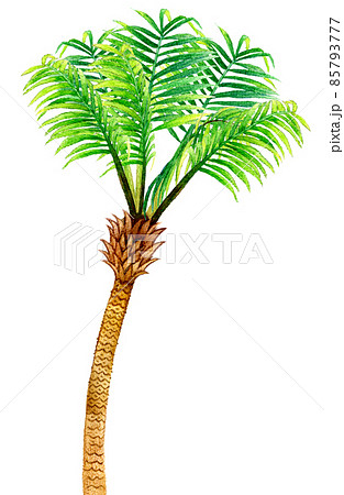 ヤシの木(シンノウヤシ) 南国の樹木の手描き水彩イラスト素材