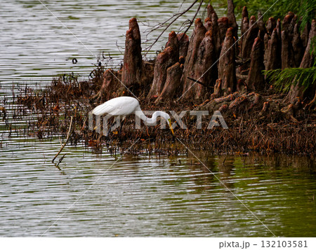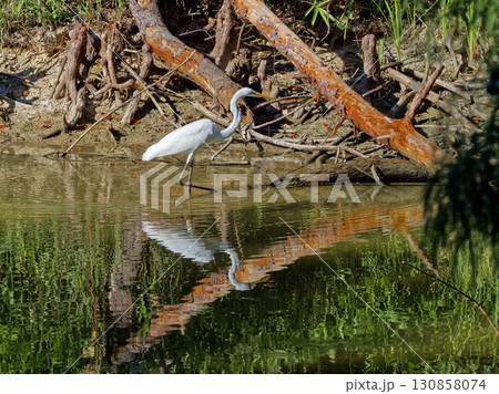 夏鳥 サギ科ダイサギの亜種チュウダイサギの狩り
