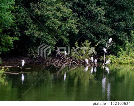 サギ科ダイサギの亜種チュウダイサギの群れ