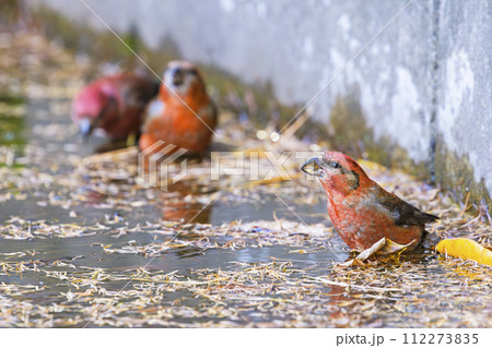 水を飲むイスカの群れ