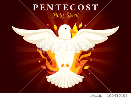 Pentecost Sunday Illustration with Flame and Holy Spirit Dove in Catholics or Christians Religious Culture Holiday Flat Cartoon Hand Drawn Templates