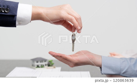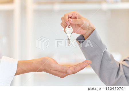 家の鍵を渡す女性の手元