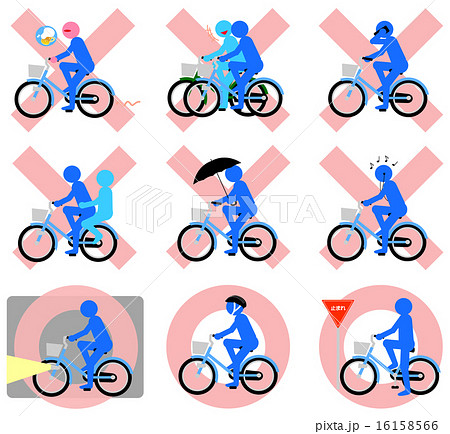 自転車マナー(ブルー、○×)