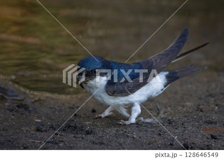 House Martin, Delichon urbicum on ground