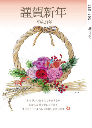 2019年賀状「ガーリーデザイン」あけおめ 日本語添え書き付き
