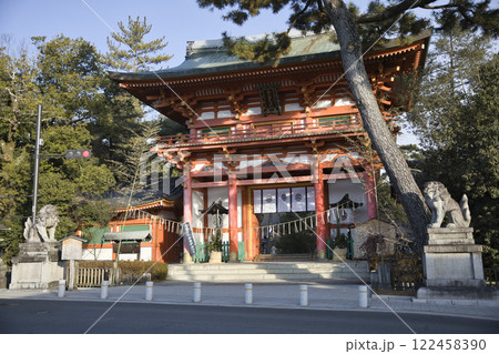 今宮神社 今宮門前通りから望む朝日に照らされる楼門9
