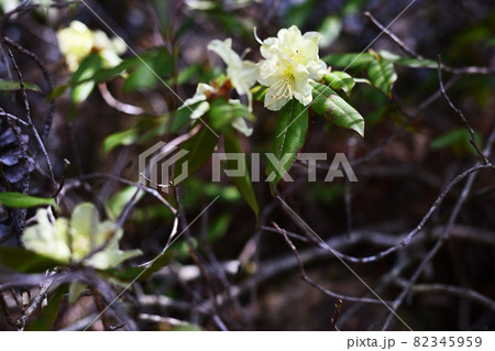 岩場を好んで咲くクリイム色のヒカゲツツジ