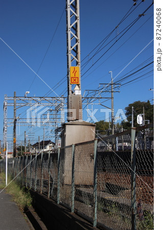 京成電鉄のデッドセクション標識 【千葉県佐倉市臼井駅付近にて】