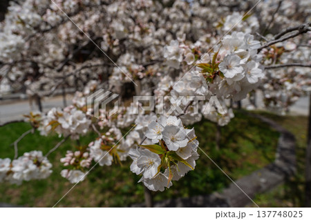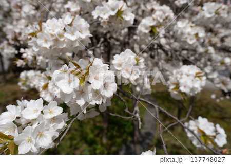 京都市西京区大原野神社に咲き誇る幻の千眼桜を撮影