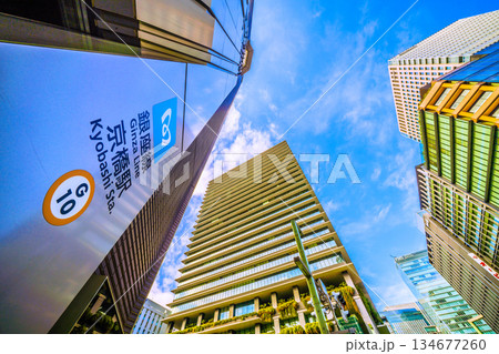 日本の東京都市景観 京橋の交差点からオフィスビルなどを望む(再開発…)