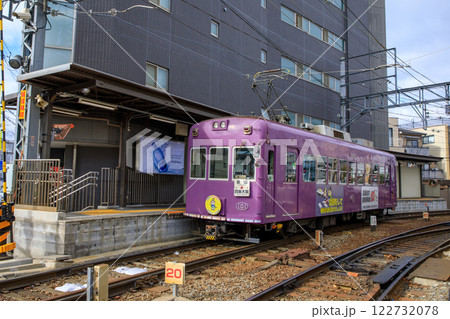 嵐電の電車 嵐山駅 京都 京都市 京都府