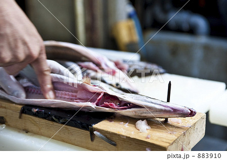 鱧の下ごしらえ 京都魚市場にて
