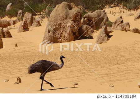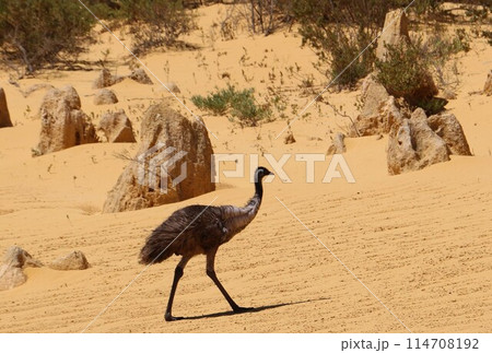 ナンバン国立公園のピナクルズの間を闊歩するエミュー
