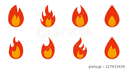 Swirling fire or flames set. Flat vibrant color illustration isolated on white background.