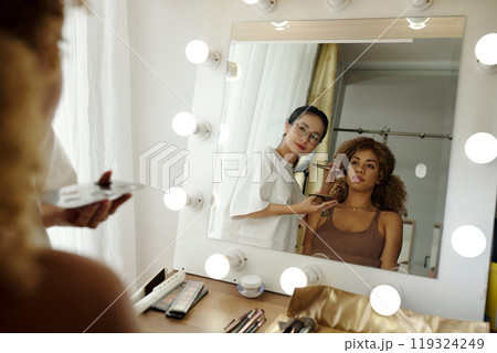 Make-up Artist Painting Model In Studio