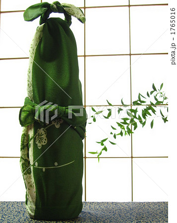 風呂敷で包んだ瓶【びん包み・贈り物イメージ】【和室】