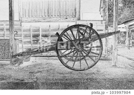 昔の荷車大八車モノクロ1
