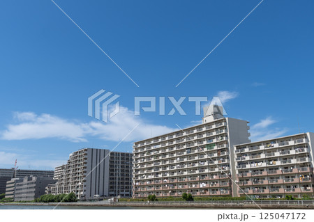 爽やかな青空のマンション街