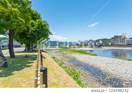 人吉城跡公園沿いを流れる球磨川の河川敷