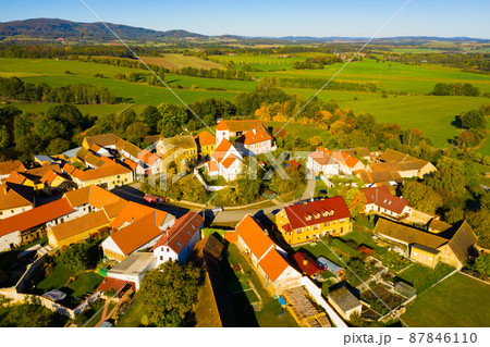 Aerial view of Czech village Cakov