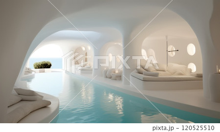 Luxury cave villa with pool and space for rest. Neural network ai generated art
