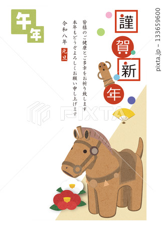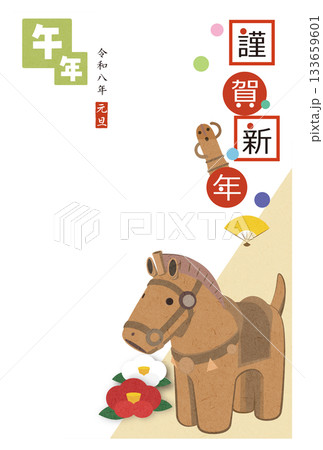 年賀状素材 はにわの馬のイラスト 2026 はがき用テンプレート