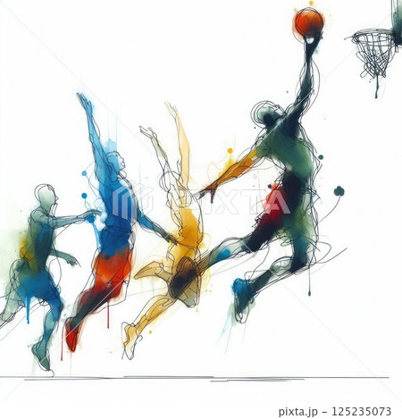 Dynamic Basketball Player Silhouette with Abstract Colorful Splash Art with Generative AI.