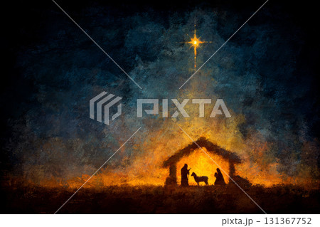 Nativity scene holy family stable star night sky silhouette peaceful Christmas religious tradition