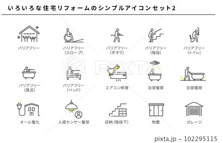 いろいろな住宅リフォームのシンプルアイコンセット2、ベクター