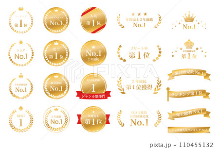 ランキング アイコン セット ゴールド リボン 旗 月桂冠 月桂樹 メダル 王冠 星