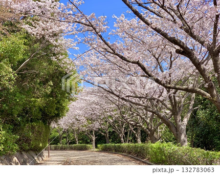 青空に映える満開の桜並木〈岡崎中央総合公園(岡崎レッドダイヤモンドスタジアム裏)/愛知県岡崎市〉