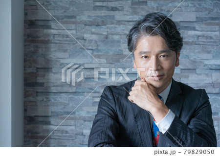 ソファに座って腕組みをするミドルエイジの男性のポートレート