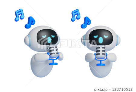 3D graphics of AI character holding a microphone and singing