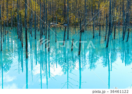 (北海道の風景) 美瑛町の青い池ライトアップ