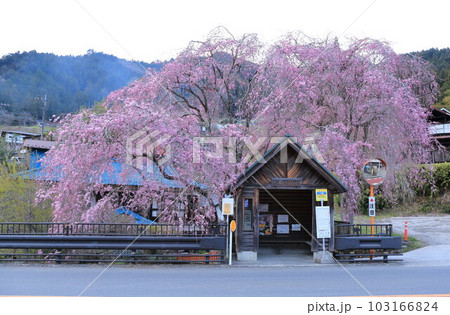 檜原村人里のバス停の垂れ桜
