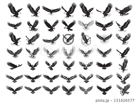 Massive collection of eagles in flight and attacking poses, Eagle Vector Bundle, Featuring detailed and silhouette styles for powerful logos. Birds.