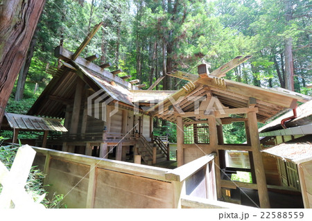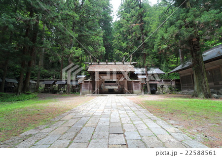 厳冬の長野県大町市、仁科三湖の木崎湖畔の集落