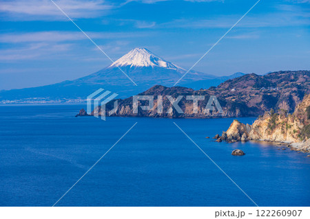 【静岡県】西伊豆の今山遊歩道から望む、黄金崎・恋人岬そして富士山