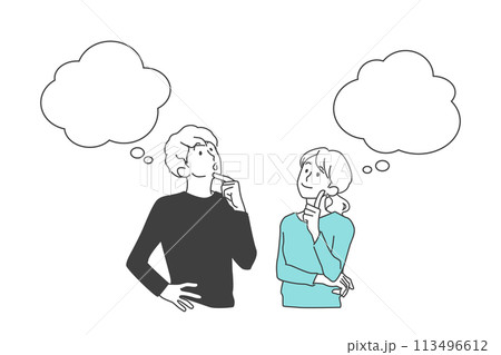 一緒に考える若い男女、カップル、夫婦のイメージイラスト