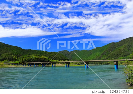 【高知県】晴天下の佐田沈下橋(四万十川)