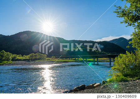 雄大な四万十川 夏の風景 (高知県 四万十市 佐田沈下橋)