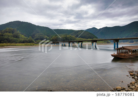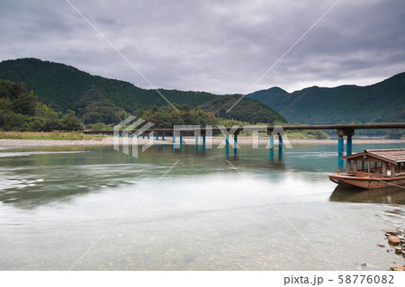 【高知県】晴天の佐田沈下橋と屋形船(四万十川)