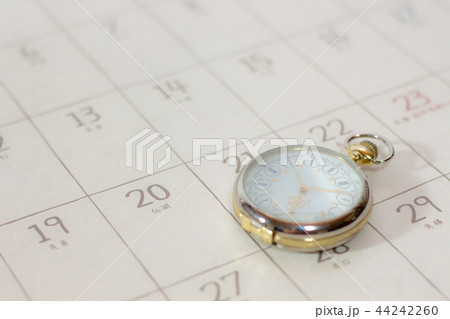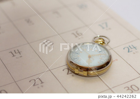 カレンダーの上の懐中時計 時の流れイメージ